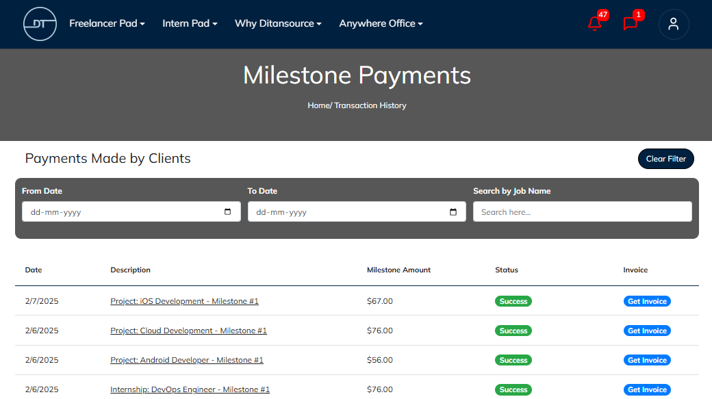 By following these steps, you can Generate payment invoice for all the payments by the client on Ditansource. If you have any issues or need assistance, please reach out to our support team at contact@ditansource.com.